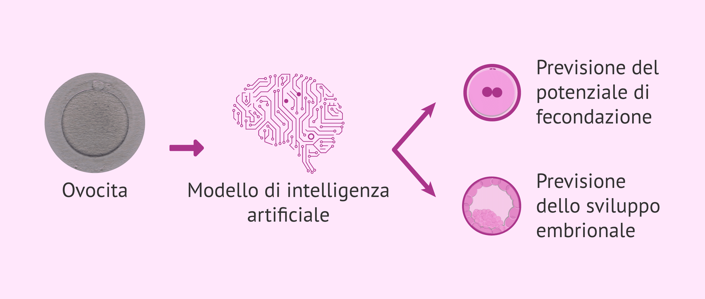 L'intelligenza artificiale (IA) applicata al campo della riproduzione assistita e, nello specifico, alla valutazione degli ovuli, permette di fare una previsione del potenziale di fecondazione dell'ovulo in base alle sue caratteristiche morfologiche. Inoltre, consentirebbe anche di fare una previsione del potenziale di sviluppo embrionale.